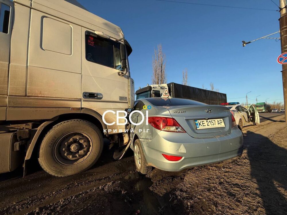 У Кривому Розі на Нікопольському шосе сталася серйозна дорожньо-транспортна пригода за участю вантажівки та навчального автомобіля.
