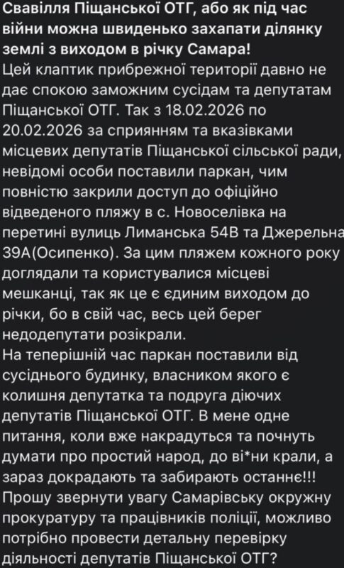 Скандал на Дніпропетровщині: у Піщанській ОТГ мешканці скаржаться на незаконне захоплення прибережної зони (ФОТО)